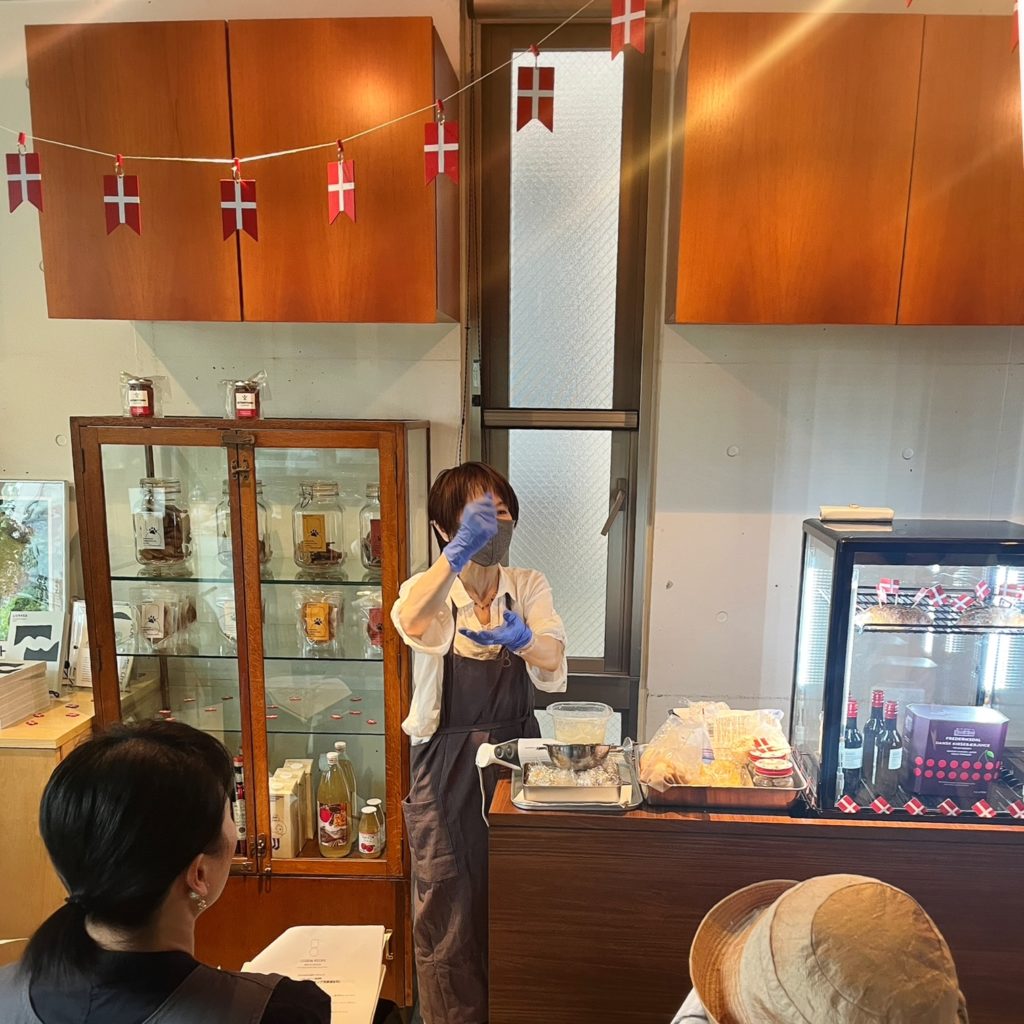 はじめにさちこさんより、北欧の食文化や歴史、デンマークの国民食としてのロブロの魅力などの講義から,ロブロの作り方実演。